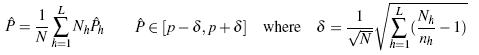 In the table above, there are the approximations of precision for each strata. Finally, we can compute the approximated precision in the entire population (P*). Using the following equations (where h depicts stratum, and sigma is a margin of error with a confidence of 95%) from [4]: